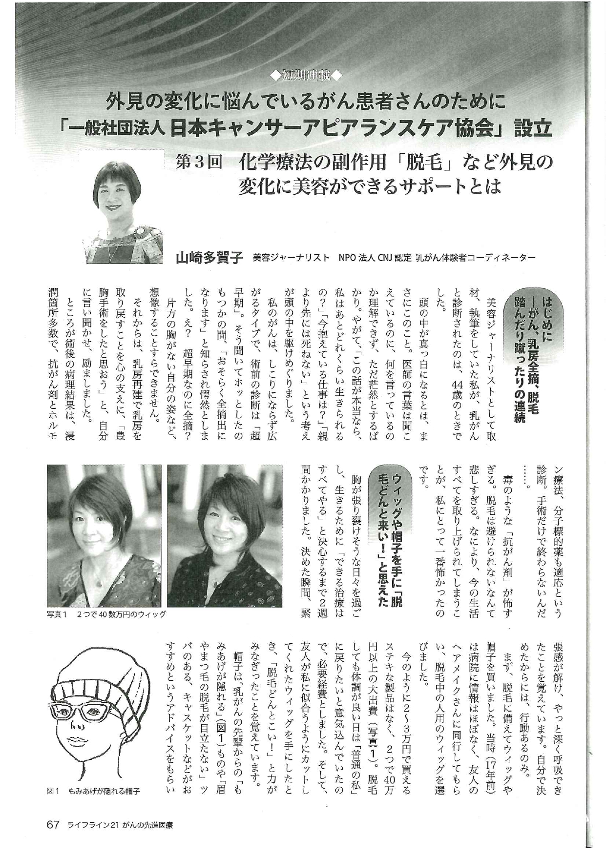山崎多賀子 理事が化学療法の副作用「脱毛」など外見の変化に美容ができるサポート関する記事を寄稿しました。