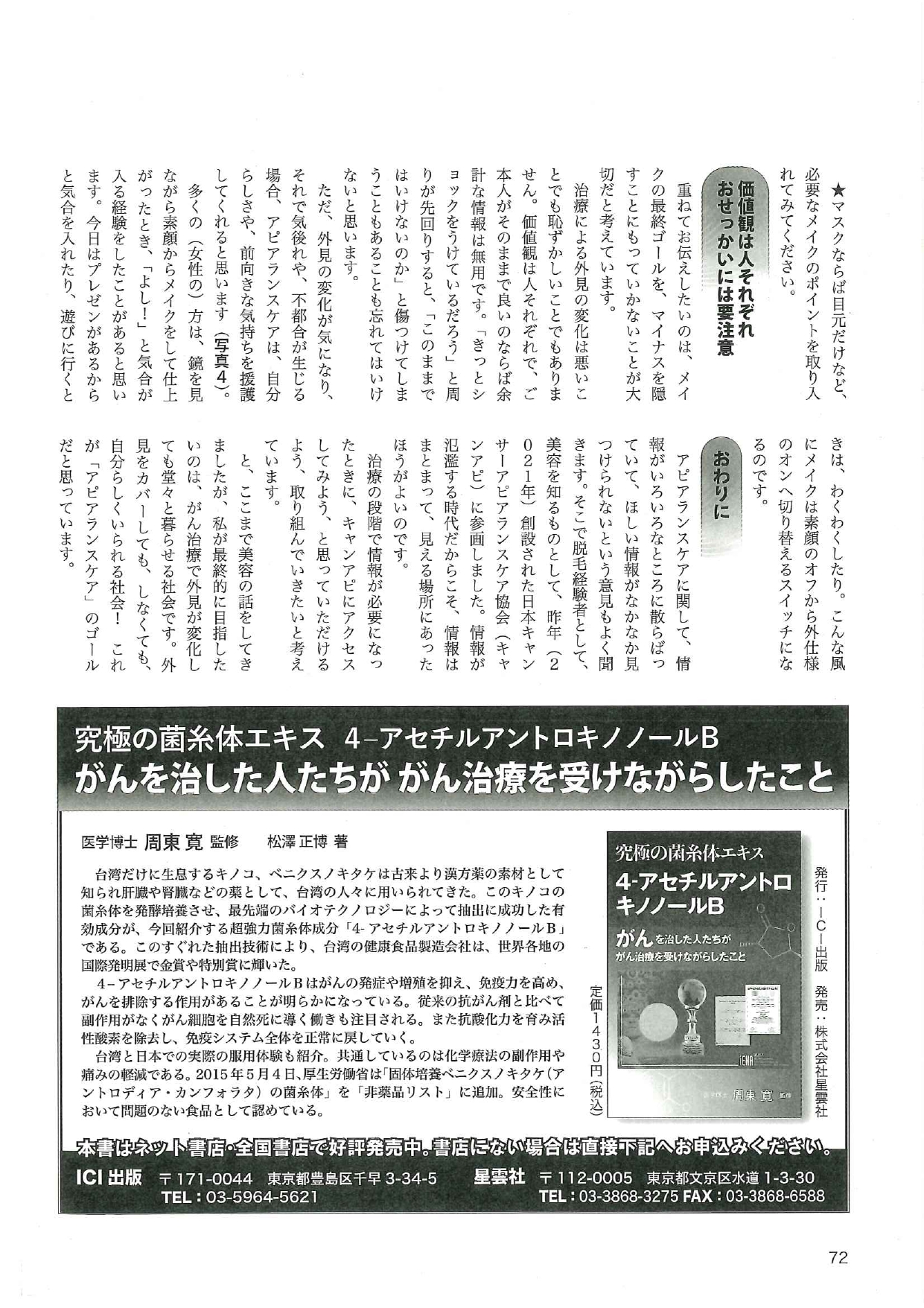 がん患者と家族に希望の光を与える情報誌「ライフライン21 がんの先進医療」(2022 Oct.vol.47)に